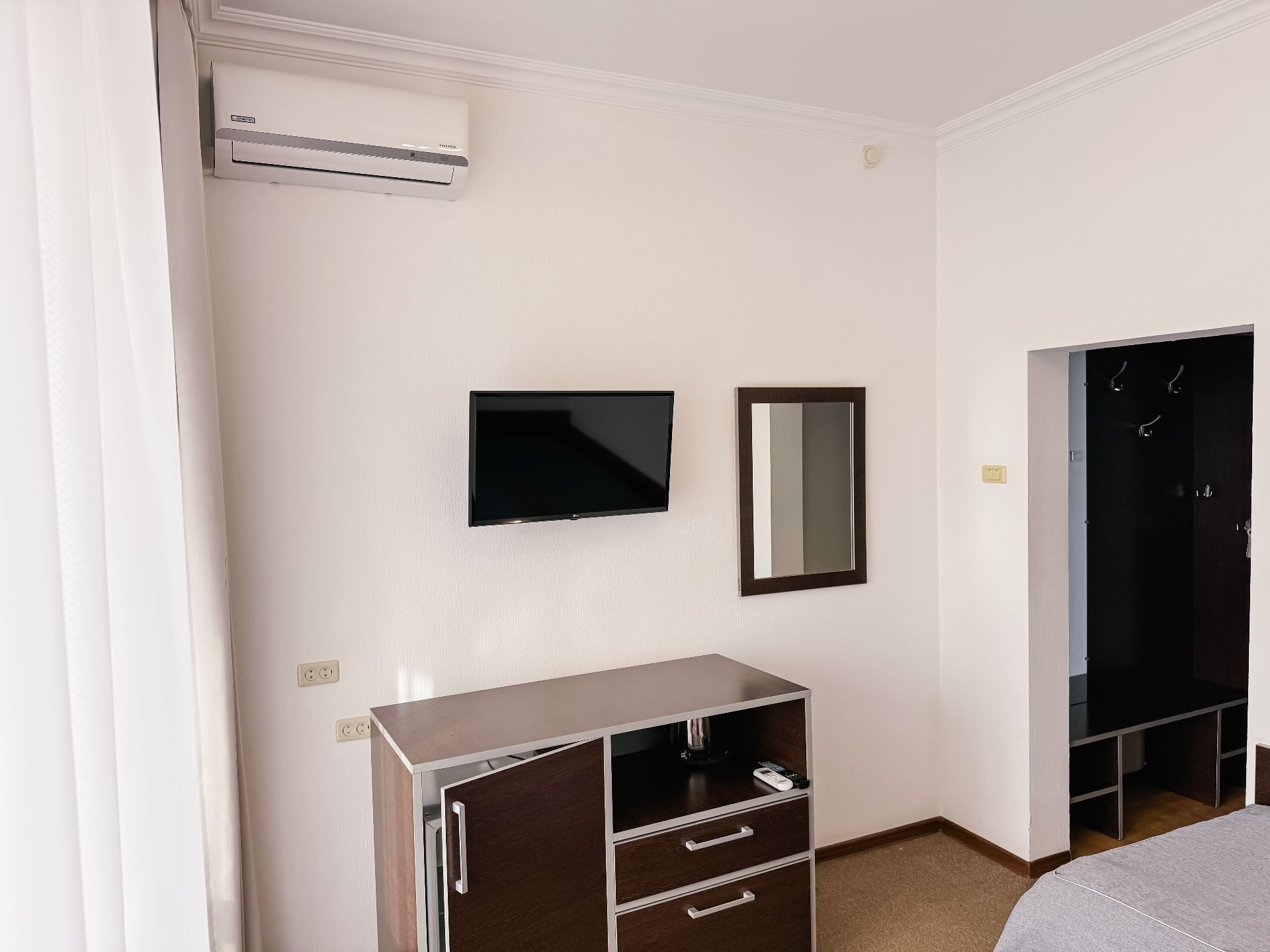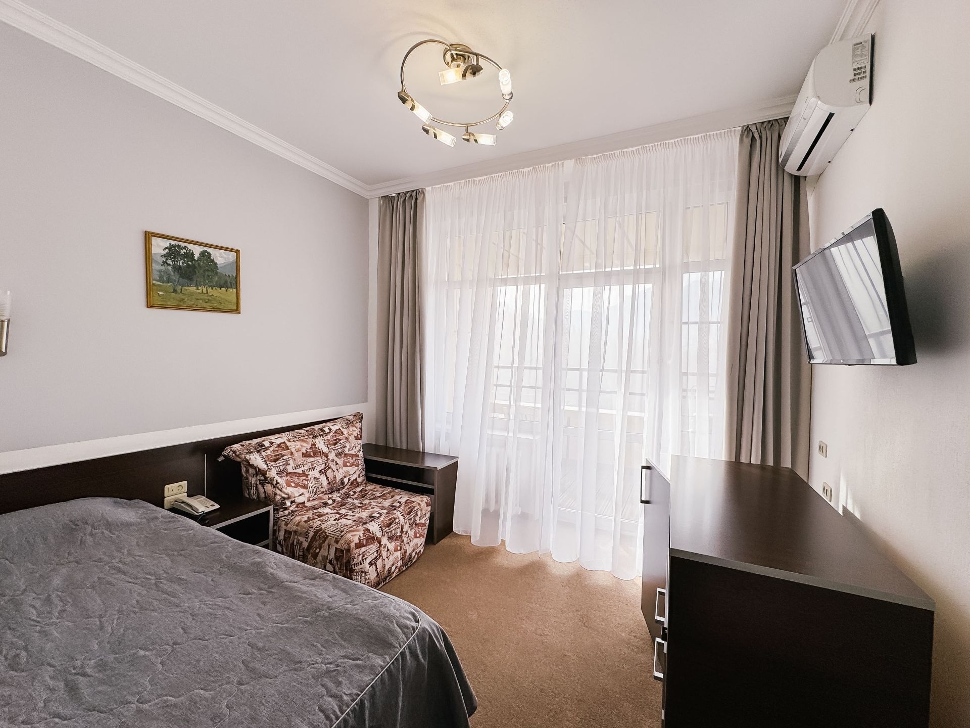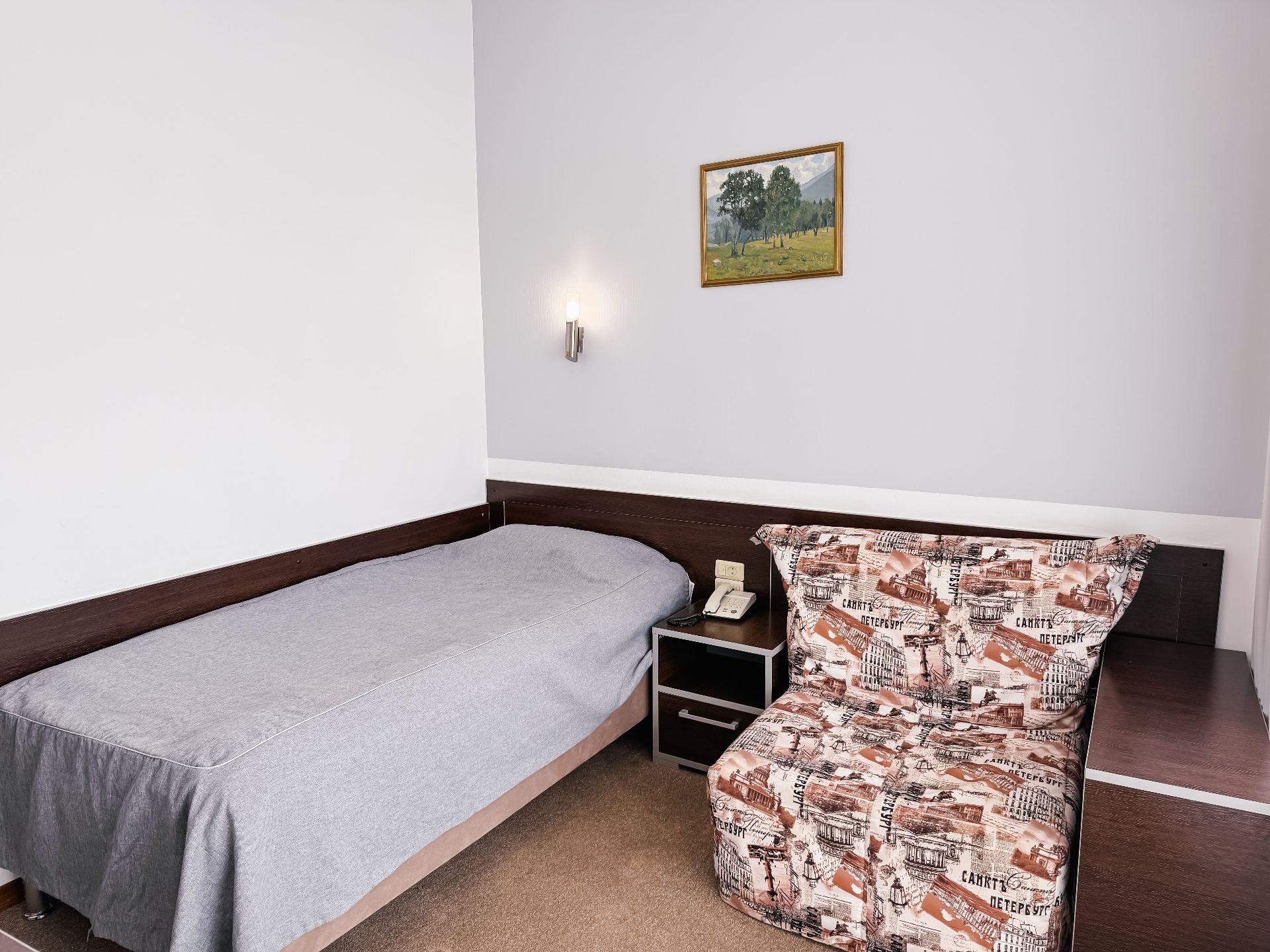 Одноместный номер - номер оборудован всем необходимым для комфортного проживания: удобная мебель, техника, балкон, бесплатный Wi-Fi. Одноместный номер идеально подходит тем, кто ценит личное пространство и предпочитает отдыхать в атмосфере покоя и уюта.