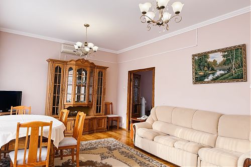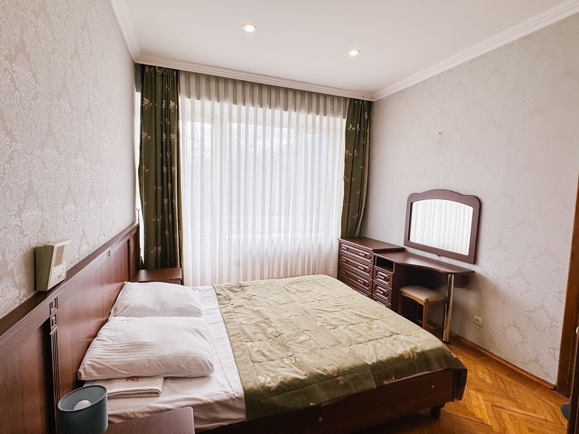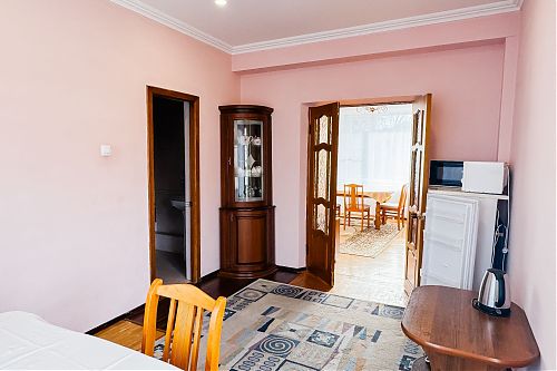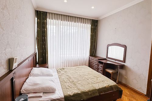 Трехкомнатный номер «Семейный» отличается более высоким уровнем комфорта и удобства. В вашем распоряжении удобная мебель, техника, балкон, бесплатный Wi-Fi. Обстановка номеров выполнена в мягких пастельных тонах, создающих приятную атмосферу для полноценного отдыха и восстановления здоровья.